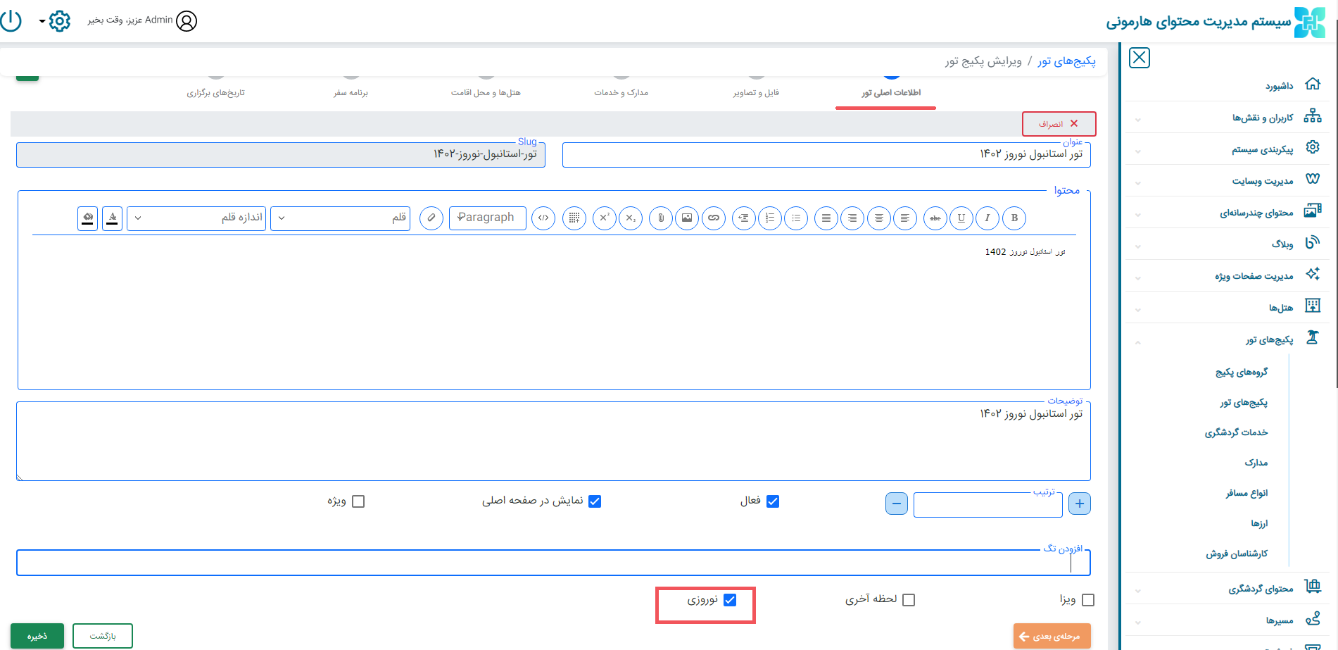 همچنین برای نمایش پکیج ها در این قسمت کافی است هنگام تعریف پکیج تیک نوروزی را بزنید .