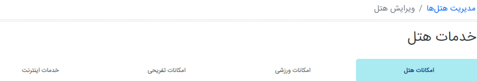 همچنین در این بخش امکانات پیش فرضی که در قسمت وارد کردن اطلاعات هتل در مدیریت هتل ها نیاز دارید را نیز تعریف می کنید.