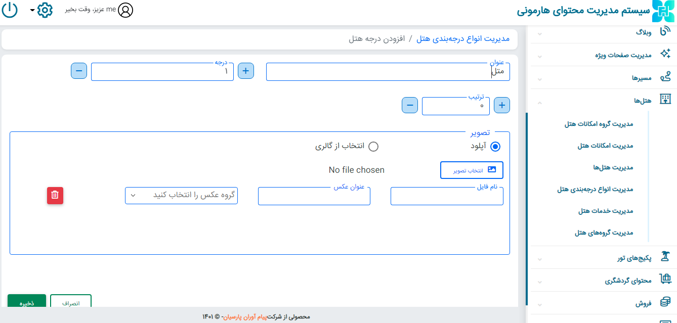 از قسمت هتل ها ← مدیریت انواع درجه بندی هتل ← افزودن درجه بندی جدید