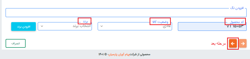 بسته به دیزاین سایت شما کد محصول را وارد کنید، وضعیت کالا را از بین (عادی، به زودی، استعلام تلفنی ) و برند را انتخاب کنید.