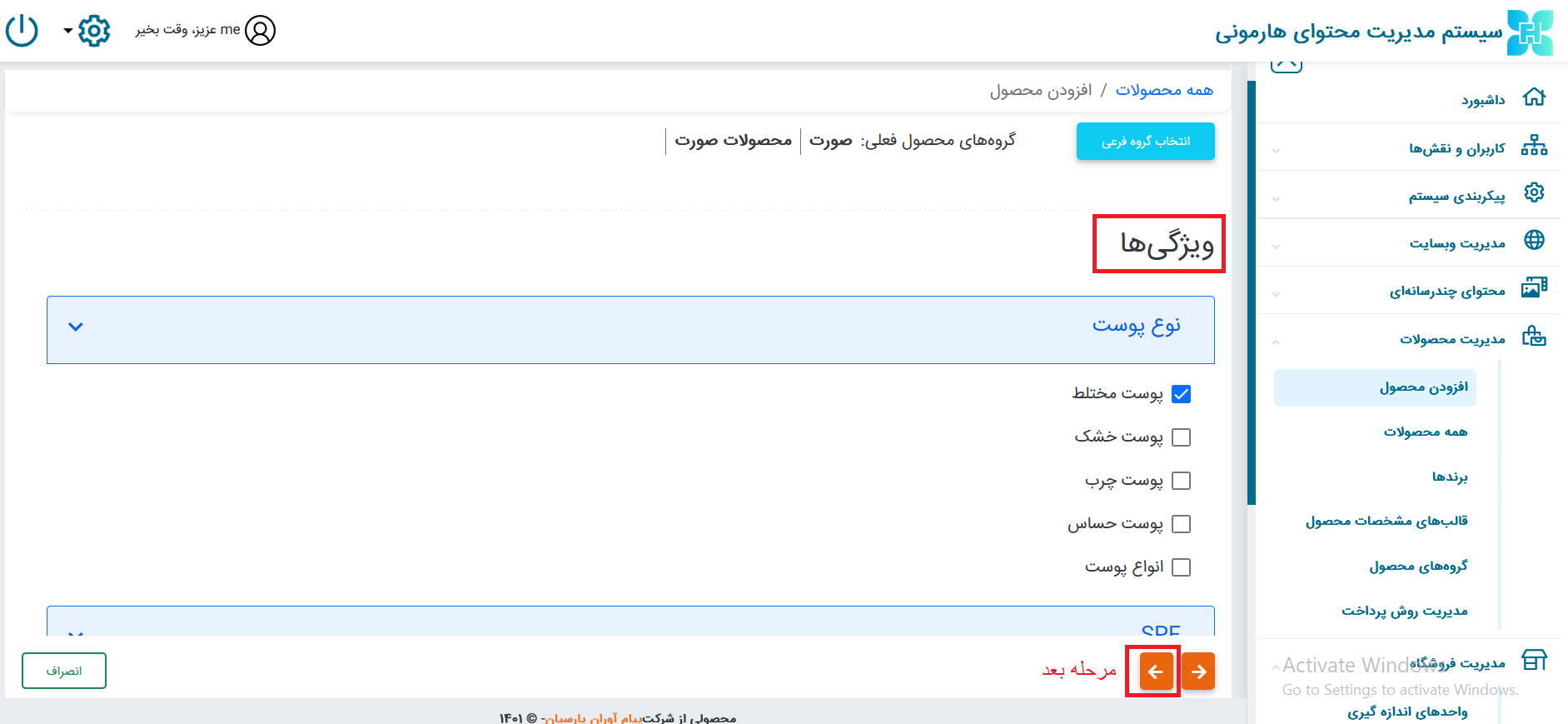 سپس قسمت ویژگی ها را کامل و مشخص کنید و به مرحله ی بعد بروید.