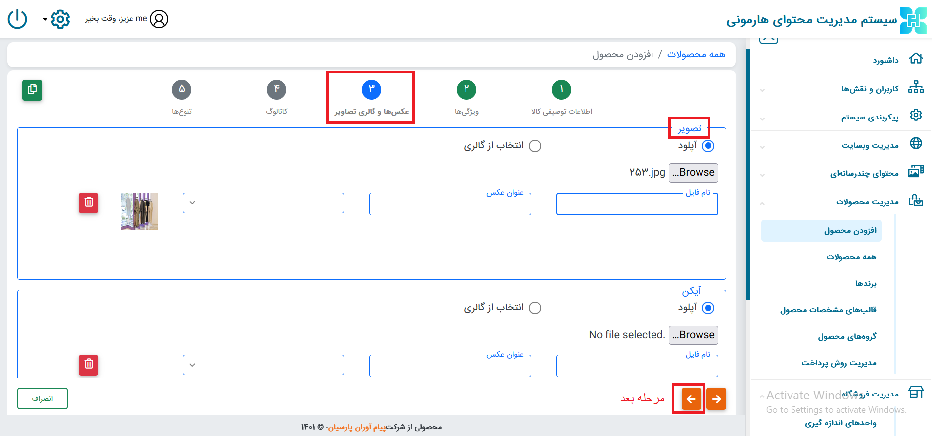 عکس مرتبط با محصول خود را آپلود کنید و به مرحله بعد بروید.