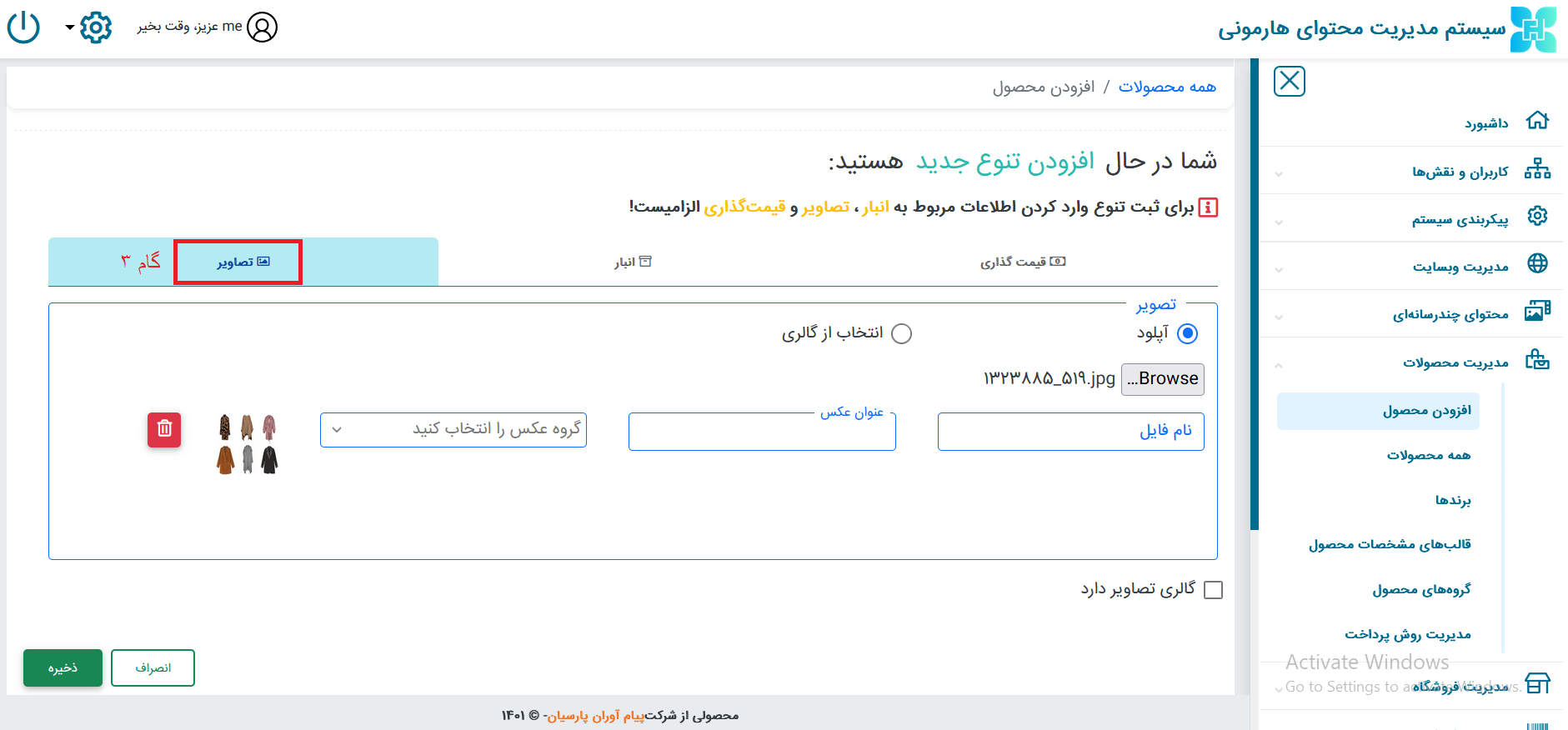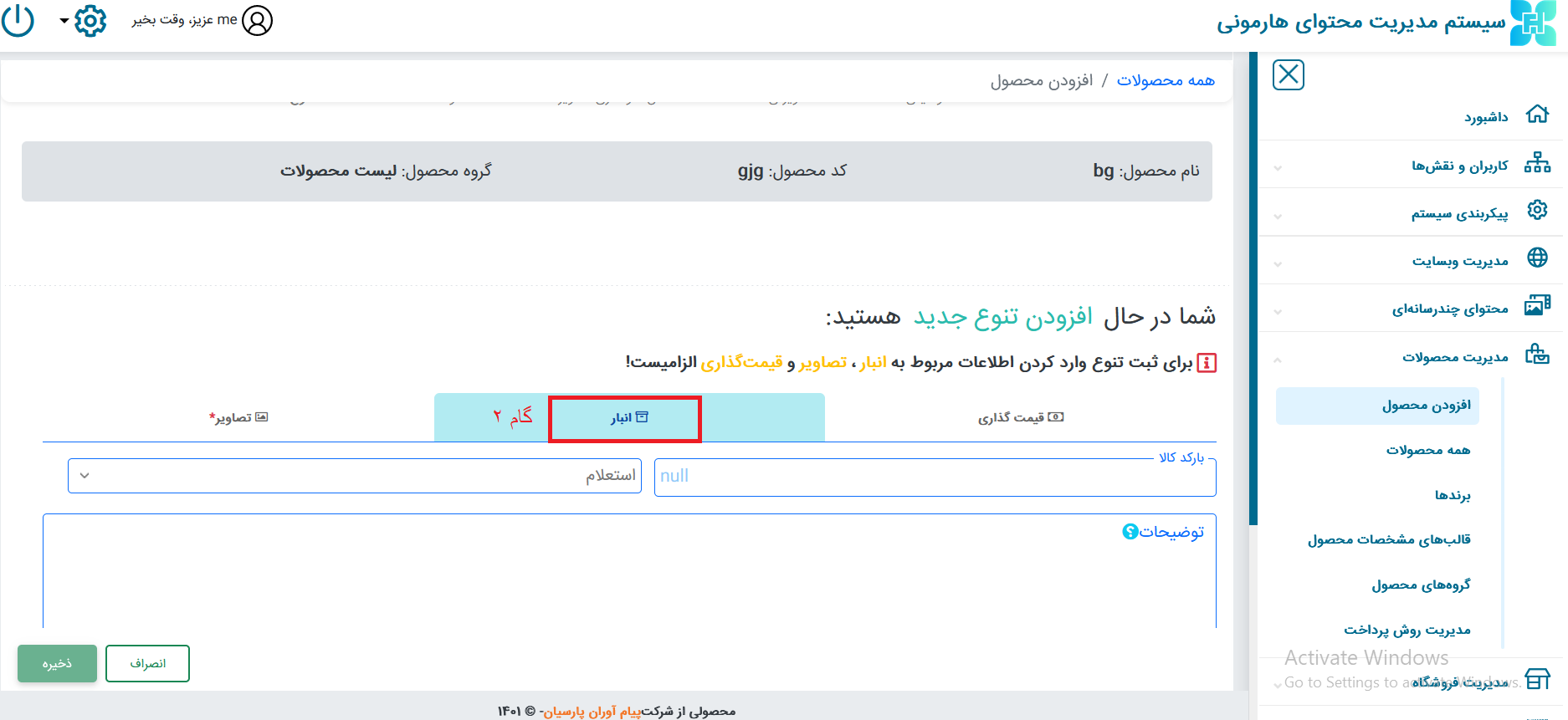در نهایت روی گزینه ی ذخیره کلیلک کرده تا اطلاعات و محصول مورد نظر ثبت گردد.