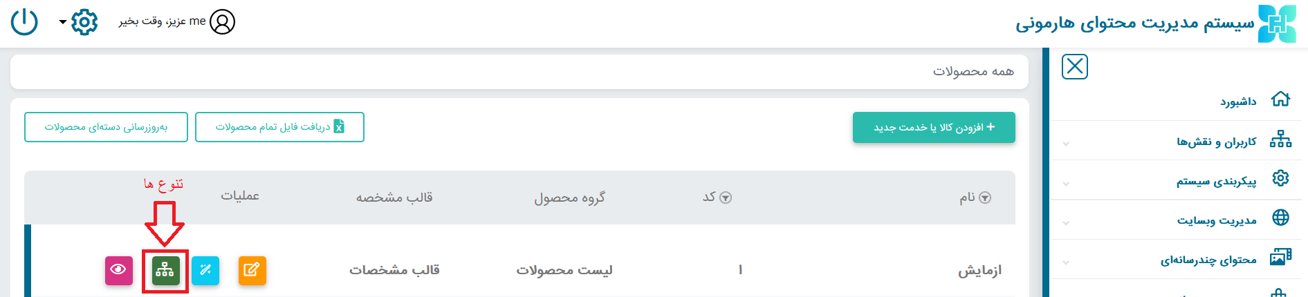 برای این منظور ابتدا روی گزینه ی تنوع ها ( گزینه ی سبز رنگ سمت چپ) کلیک کنید.