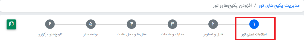 از قسمت پکیج تور ← مدیریت پکیج های تور ← افزودن پکیج تور جدید ← اطلاعات اصلی تور